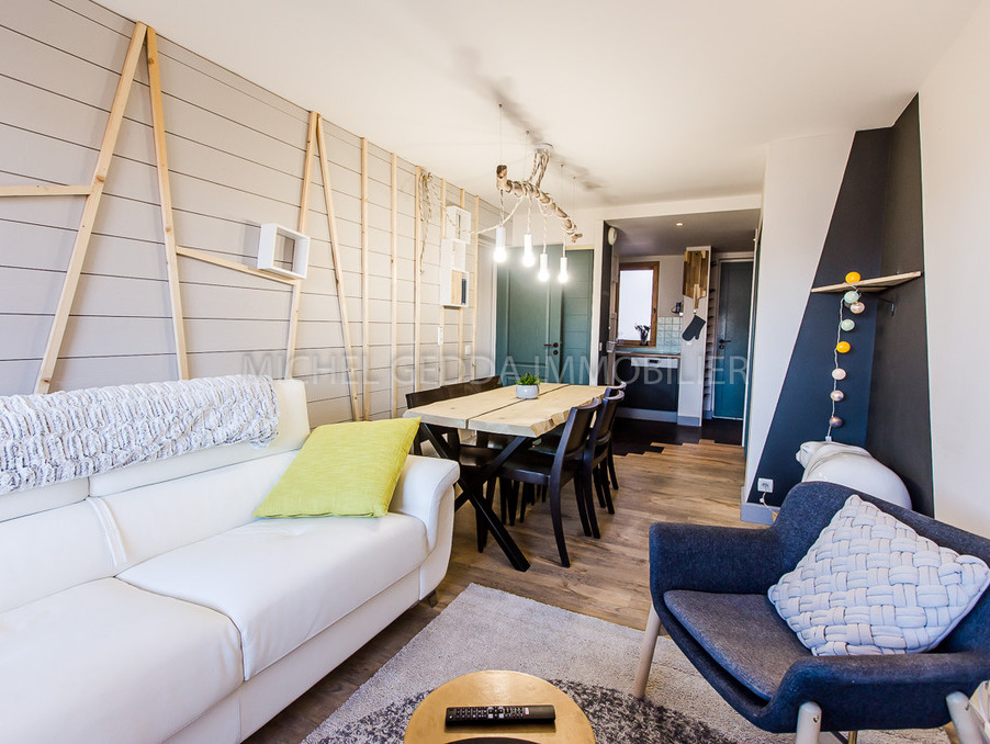 Très beau 3 pièces + cabine 50 m2 pour 6 personnes (rénové en 2017) comprenant : - Un coin nuit à l'entrée avec un canapé BZ , - WC - Une cuisine...