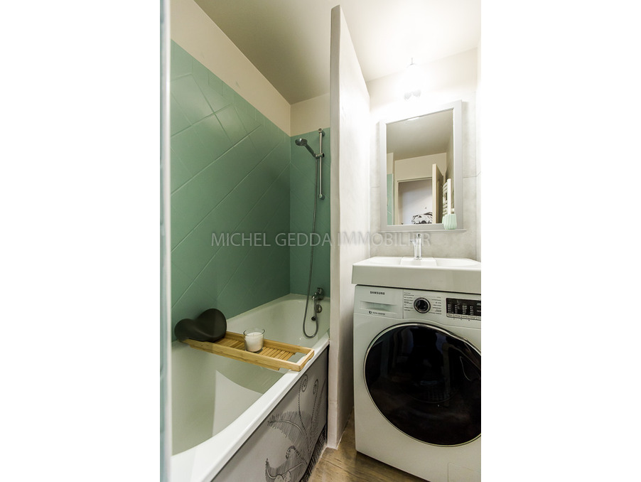 - Une salle de bains avec baignoire et lave linge / sèche linge.