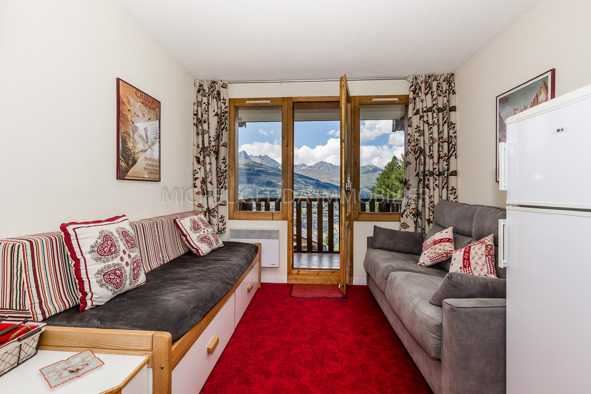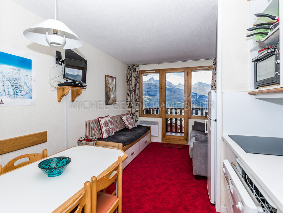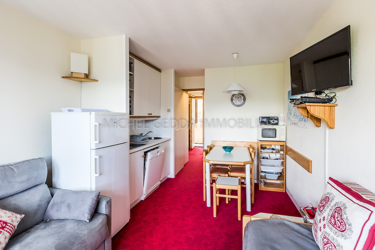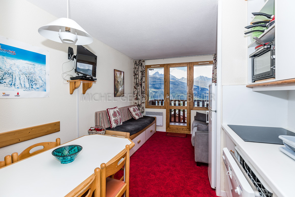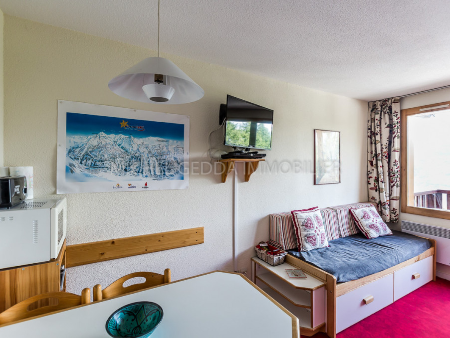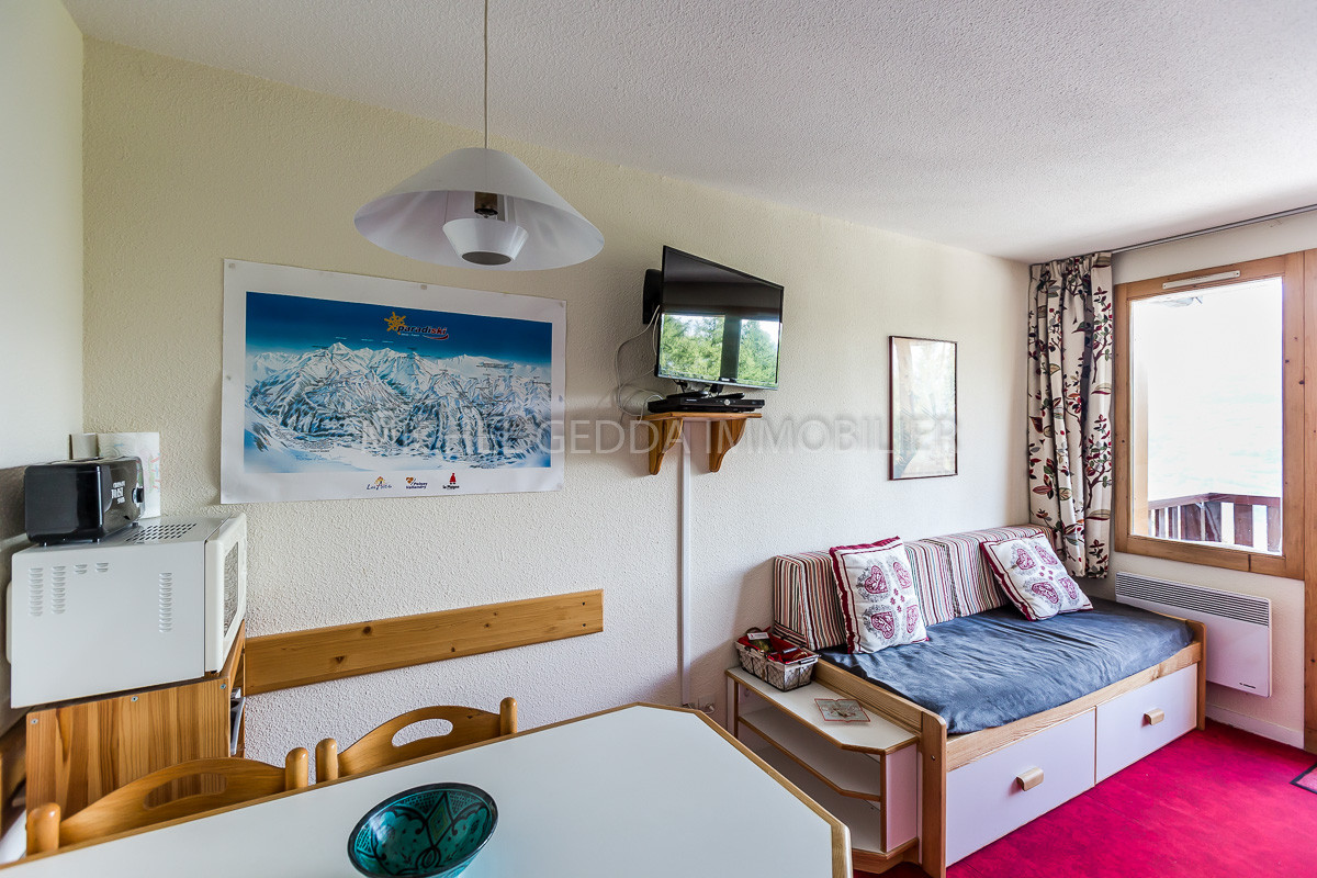 COMPROMIS EN COURS À L'AGENCE. Situé au cœur de Paradiski, domaine La Plagne, village Les Coches, ce joli studio plus chambre-cabine avec fenêtre est bien rénové.