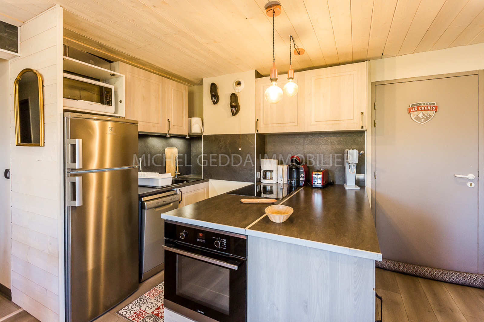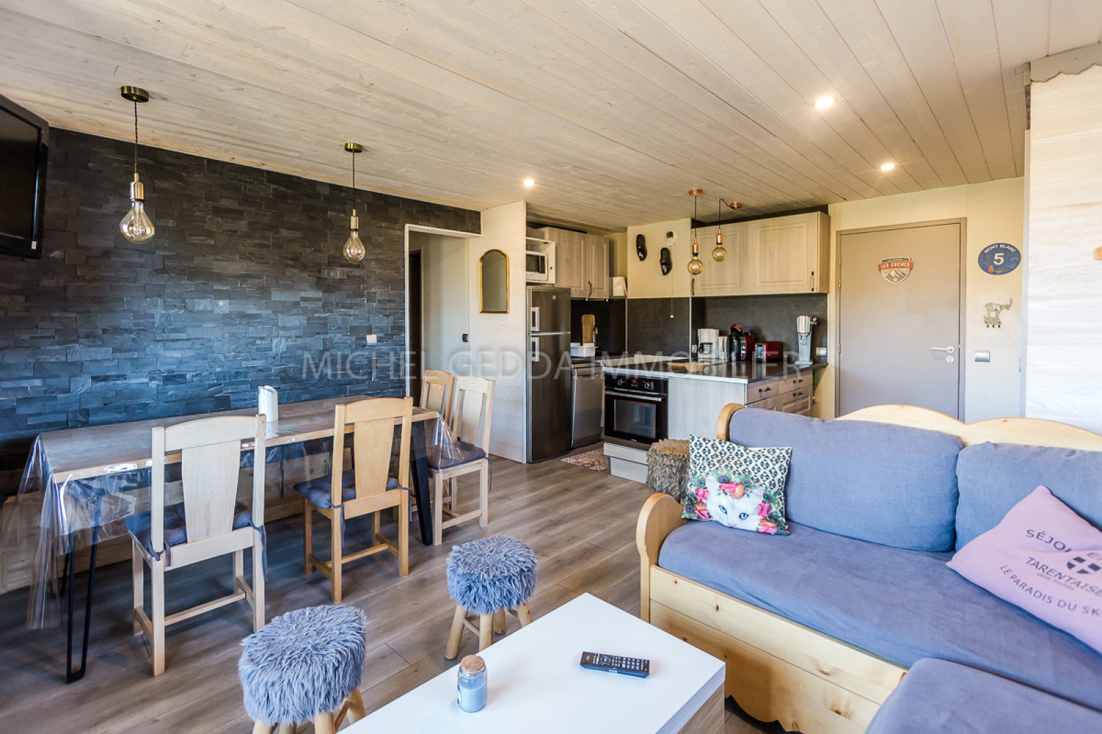 Très bel appartement 3 pièces + alcôve de 50 m² entièrement créé et rénové en 2019, meublé et équipé pour 8 personnes (linge non inclus)(classé 2 étoiles-4 cristaux Paradiski) comprend : - Une chambres avec 1 lit double 140 + TV - Une deuxième chambre double lit 140 - Une alcôve avec 2 lits superposés - Une salle d'eau (douche) + wc - Une salle d'eau (douche) - WC - Séjour : canapé avec un ensemble de lits gigognes pour 2 personnes - TV - Cuisine américaine toute équipée (dont lave vaisselle et plaques vitocéramiques) Balcon : Nord Ouest vue Montagne Le + : lave linge Casier à ski NB : appartement non fumeur - animaux domestiques non admis Le + : option WIFI payante : 39 euros au lieu de 49 euros la semaine sur pré-réservation Située au pied des pistes,La résidence L'Epervier (Le Baccara 2) a été vendue en 2013 et les appartements sont désormais rénovés pour la majorité d'entre eux. Un parking extérieur public est à proximité. L'accés à la résidence se fait par quelques marches pour arriver au niveau de l'entrée (ensuite un ascenseur dessert tous les étages). Accès commerces : A pied par un chemin, en navette ou bien par la Télébufette Face au Mont-Blanc, au coeur de Paradiski, Montchavin-Les Coches, vous proposent dans une ambiance chaleureuse et familiale : - Un domaine skiable exceptionnel skis aux pieds. (425 km de pistes La Plagne - Les Arcs) - L'Espace Paradisio : à Montchavin Complexe aquatique et Wellness (Hiver-été) - Le Label famille plus : pour passer de bonnes vacances en famille et satisfaire les envies des petits et des grands. - Une Navette entre les deux villages Les Coches vous offrent une architecture privilégiant la pierre et le bois dans un environnement boisé. Hameau du Sauget : Les résidences skis aux pieds surplombent la vallée, face au Mont Blanc.