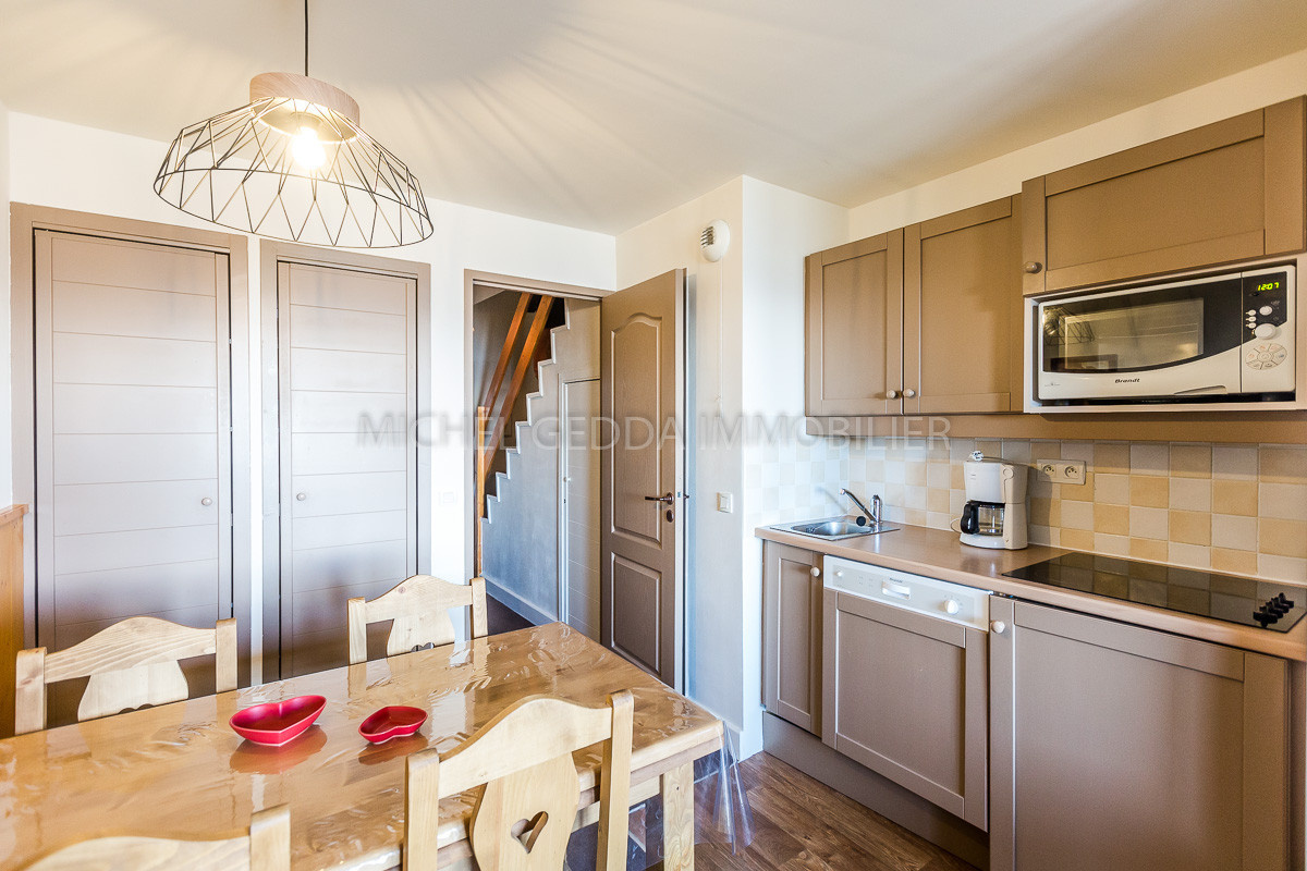 Classé 2 étoiles et 4 cristaux Paradiski : Bel appartement 2 pièces duplex avec mezzanine de 36m2 rénové en 2014, meublé et équipé pour 6 personnes comprenant : - Une salle de bains avec baignoire - WC séparés - Un séjour avec un canapé RAPIDO 2 personnes - TV - Un coin cuisine tout équipé (dont lave vaisselle) ouvert sur le séjour A l'étage, - Une chambre avec 2 lits jumeaux - Une mezzanine avec 2 couchages Le balcon exposé Nord Ouest, a une vue magnifique sur la vallée et le Mont Blanc. Casier à skis. NB : appartement non fumeur et animaux non acceptés La résidence, La Marelle est située au pied des pistes. Un parking extérieur public se trouve à proximité. Accès aux commerces : A pied par un chemin, en navette ou par la télébufette. Face au Mont-Blanc, au coeur de Paradiski, Montchavin-Les Coches, vous proposent dans une ambiance chaleureuse et familiale : - Un domaine skiable exceptionnel skis aux pieds. (425 km de pistes La Plagne - Les Arcs) - L'Espace Paradisio : à Montchavin Complexe aquatique et Wellness (Hiver-été) - Le Label famille plus : pour passer de bonnes vacances en famille et satisfaire les envies des petits et des grands. - Une Navette entre les deux villages. Les Coches vous offrent, une architecture privilégiant la pierre et le bois, dans un environnement boisé. Hameau du Sauget : Les résidences skis aux pieds surplombent la vallée, face au Mont Blanc.