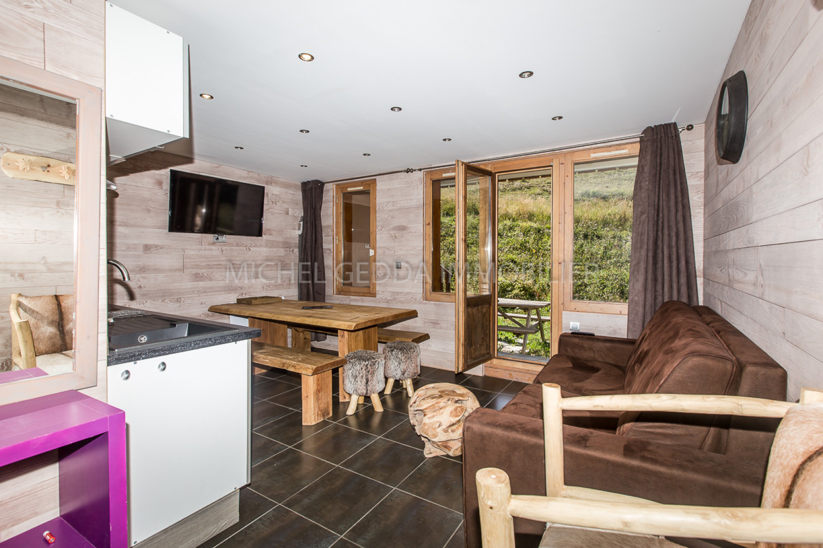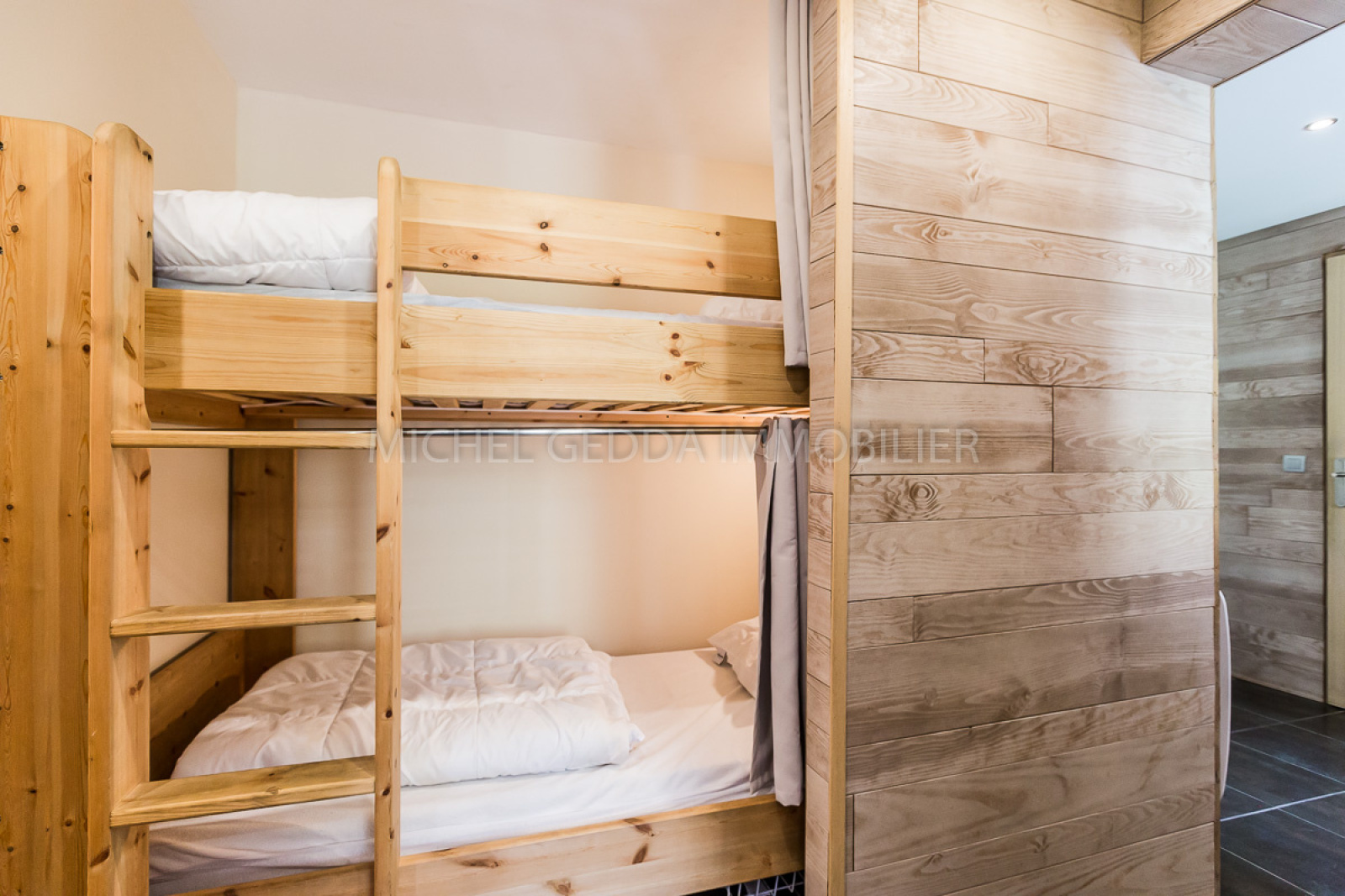 énové en 2014, meublé et équipé pour 6/7 personnes (linge non inclus) comprend : - Une chambres avec 1 lit double 140 + TV - Une deuxième chambre double lit 140 - Une alcôve avec 2 lits superposés - Deux salle d'eau (douche) wc - Séjour : canapé Rapido pour 2 personnes - TV - Cuisine américaine toute équipée (dont lave vaisselle et plaques vitocéramiques) La terrasse est exposée Sud Est. Les + : lave linge et sèche chaussures Casier à ski NB : appartement non fumeur - animaux domestiques non admis Le + : option WIFI payante : 39 euros au lieu de 49 euros la semaine sur pré-réservation Située au pied des pistes,La résidence L'Epervier (Le Baccara 2) a été vendue en 2013 et les appartements sont désormais rénovés pour la majorité d'entre eux. Un parking extérieur public est à proximité. Accès commerces : A pied par un chemin, en navette ou bien par la Télébufette Face au Mont-Blanc, au coeur de Paradiski, Montchavin-Les Coches, vous proposent dans une ambiance chaleureuse et familiale : - Un domaine skiable exceptionnel skis aux pieds. (425 km de pistes La Plagne - Les Arcs) - L'Espace Paradisio : à Montchavin Complexe aquatique et Wellness (Hiver-été) - Le Label famille plus : pour passer de bonnes vacances en famille et satisfaire les envies des petits et des grands. - Une Navette entre les deux villages Les Coches vous offrent une architecture privilégiant la pierre et le bois dans un environnement boisé. Hameau du Sauget : Les résidences skis aux pieds surplombent la vallée, face au Mont Blanc. Accueil et remise de clés : MICHEL GEDDA IMMOBILIER Place des Commerces 73210 LES COCHES Tél : 04 79 04 29 60