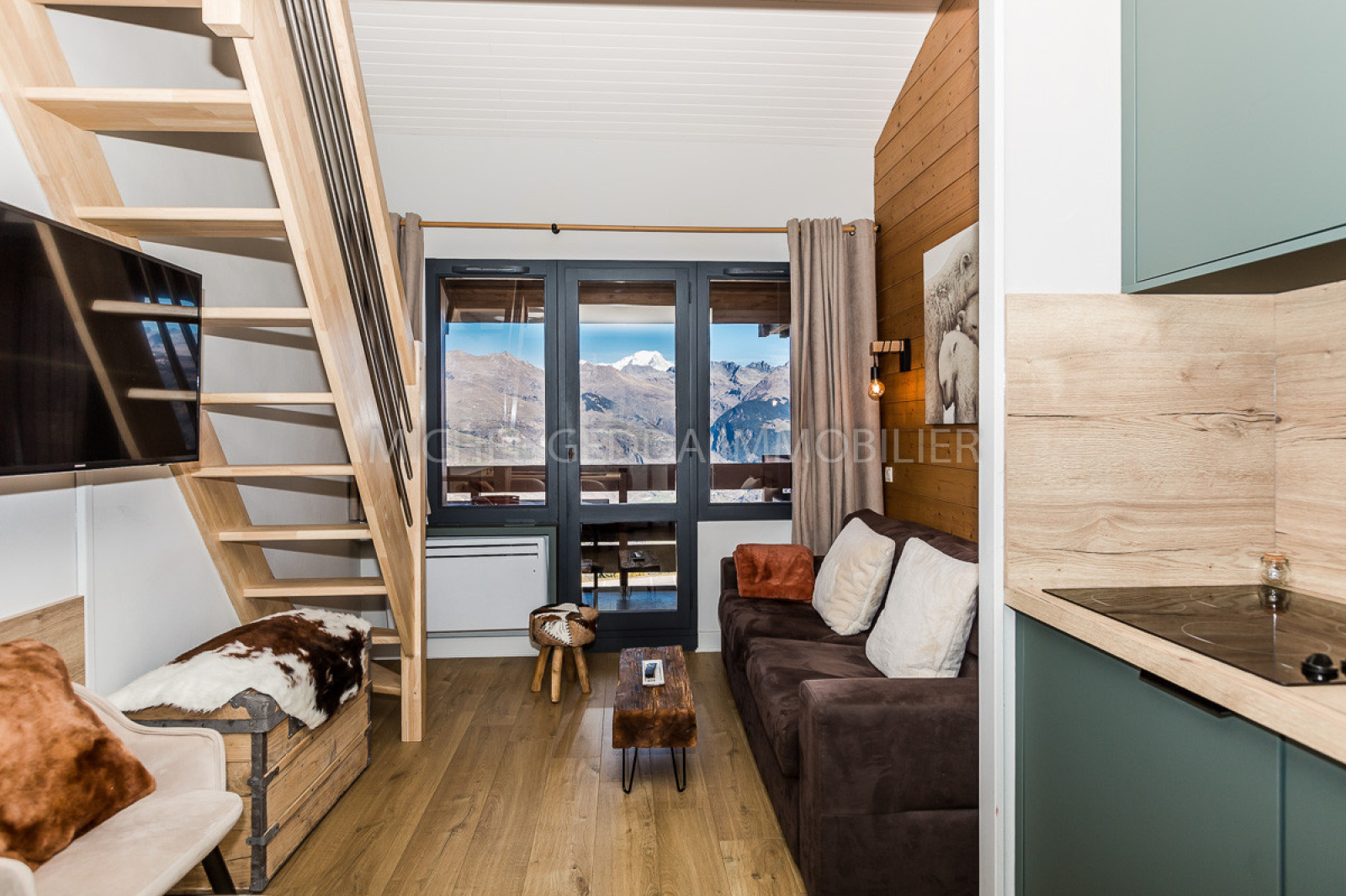 Bel appartement 2 pièces 30m2 + mezzanine (10m2 moins d' 1.80m) rénové en 2024, meublé et équipé pour 4 personnes (linge non inclus) comprenant : - Une chambre avec un lit double - Une salle de bains avec baignoire - WC séparés - Un séjour avec un canapé (sans couchage) - TV - Un coin cuisine tout équipé (dont lave vaisselle) ouvert sur le séjour - Une mezzanine avec 2 lits simples Le balcon exposé Nord Ouest, a une vue magnifique sur la vallée et le Mont Blanc. Casier à skis avec sèche chaussures NB : appartement non fumeur et animaux non acceptés Option WIFI payante : 39 euros au lieu de 49 euros la semaine sur pré-réservation La résidence, La Marelle est située au pied des pistes. Un parking extérieur public se trouve à proximité. Accès aux commerces : A pied par un chemin, en navette ou par la télébufette. Face au Mont-Blanc, au coeur de Paradiski, Montchavin-Les Coches, vous proposent dans une ambiance chaleureuse et familiale : - Un domaine skiable exceptionnel skis aux pieds. (425 km de pistes La Plagne - Les Arcs) - L'Espace Paradisio : à Montchavin Complexe aquatique et Wellness (Hiver-été) - Le Label famille plus : pour passer de bonnes vacances en famille et satisfaire les envies des petits et des grands. - Une Navette entre les deux villages. Les Coches vous offrent, une architecture privilégiant la pierre et le bois, dans un environnement boisé. Hameau du Sauget : Les résidences skis aux pieds surplombent la vallée, face au Mont Blanc. Accueil et remise de clés : MICHEL GEDDA IMMOBILIER Place des Commerces 73210 LES COCHES Tél : 04 79 41 75 67
