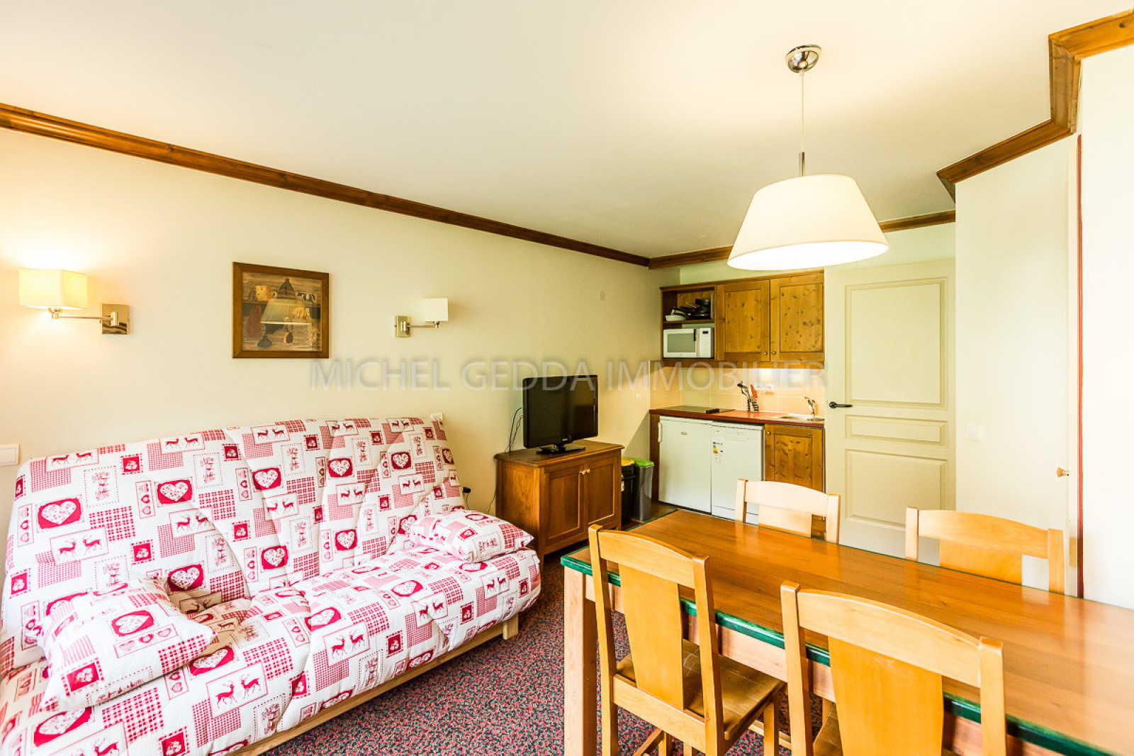 En exclusivité ! LES COCHES domaine Paradiski , studio cabine exposé sud, 28.68 m² loi Carrez situé en rez de jardin, dans une résidence récente avec ascenseur. Il comprend : entrée avec salle de bains +wc, un coin cuisine ouvert sur le séjour et une cabine avec fenêtre. Il est vendu meublé et équipé pour 4/5 personnes avec jouissance d'un casier à skis. Copropriété constituée de 73 lots.Charges courantes annuelles 1700 Euros. Taxe foncière 2023 : 245 Euros. Prix 115 000 Euros honoraires d'Agence inclus 4,55 % TTC (hors honoraires 110 000 €).